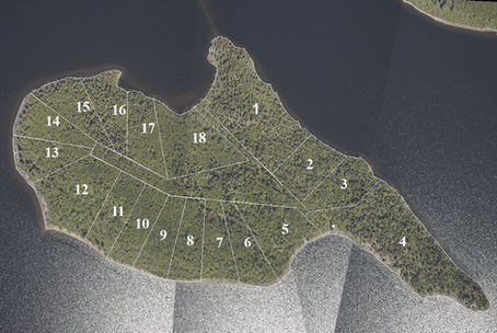 All lots have a 1/18th interest in the large 12.7 acre common area in the center of the island providing shared access to the network of hiking trails throughout the island, and the common beach on the north bay. To read the covenant document governing the common area click here.